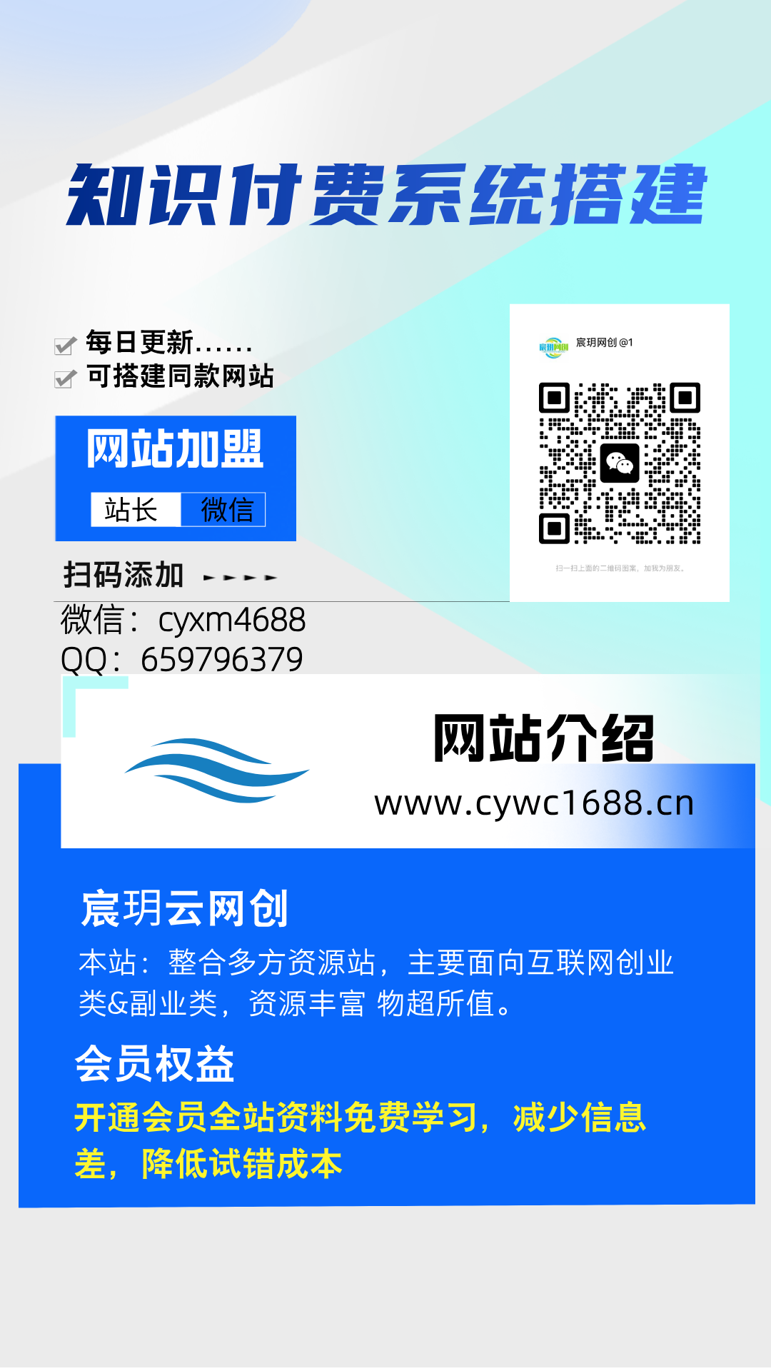 加盟XXX网创,加盟搭建同款知识付费资源网站,实现长期稳定被动收入~